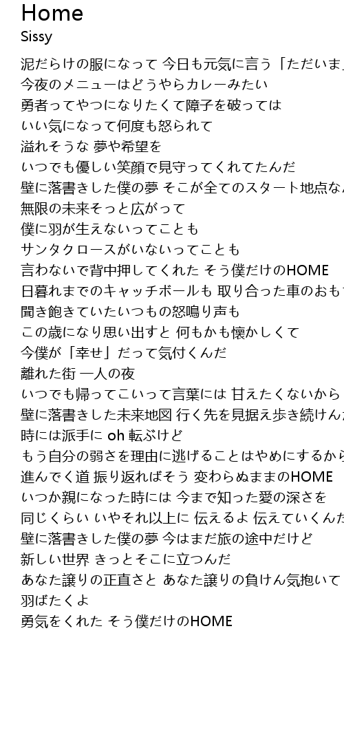 | 言わないで背中押してくれた そう僕だけのHOME | |