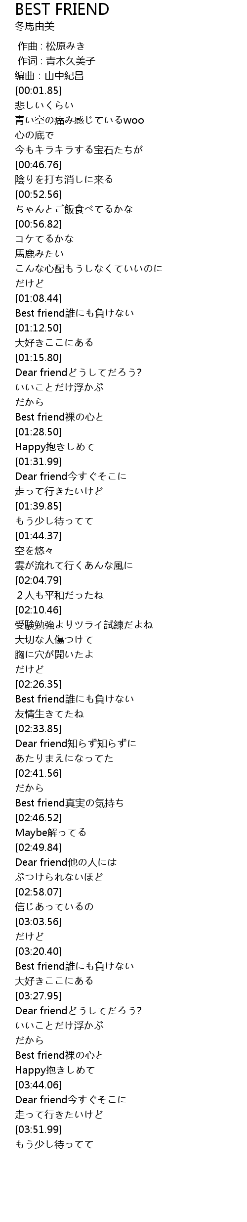 | [03:21.02] | Best friend誰にも負けない |