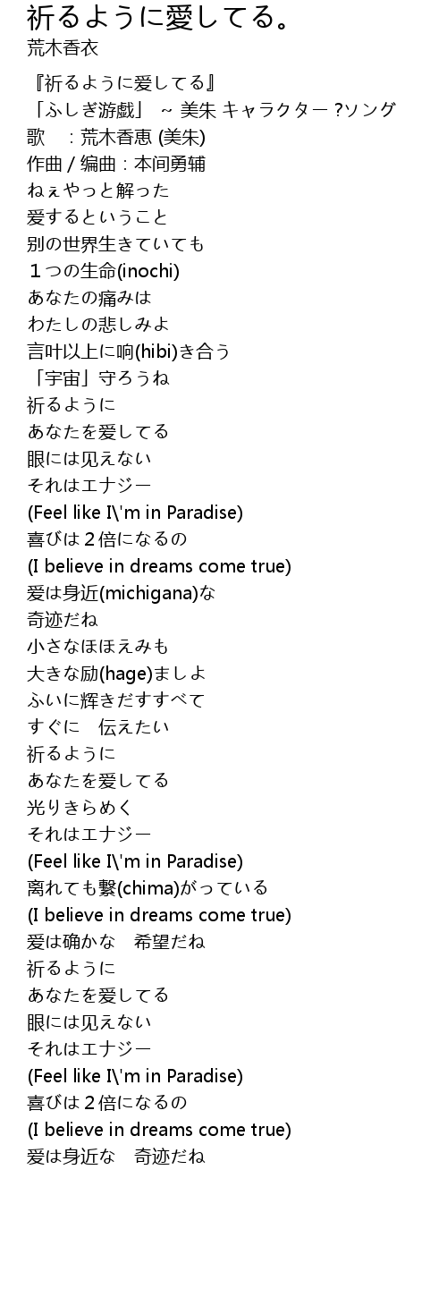 | Song | 祈るように愛してる。 |