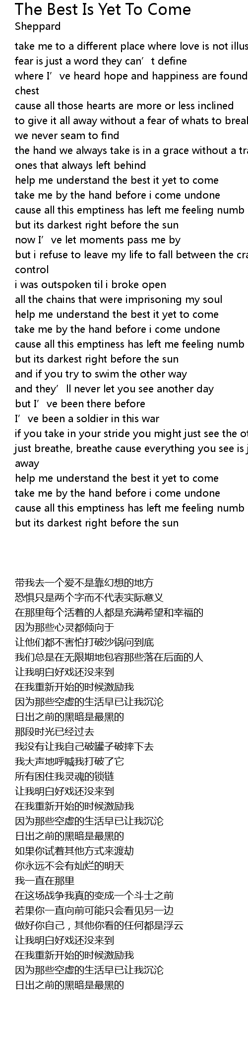 | [02:15.310] | help me understand the best it yet to come |