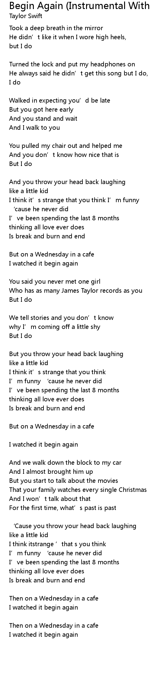 | Song | Begin Again (Instrumental With Background Vocals) |