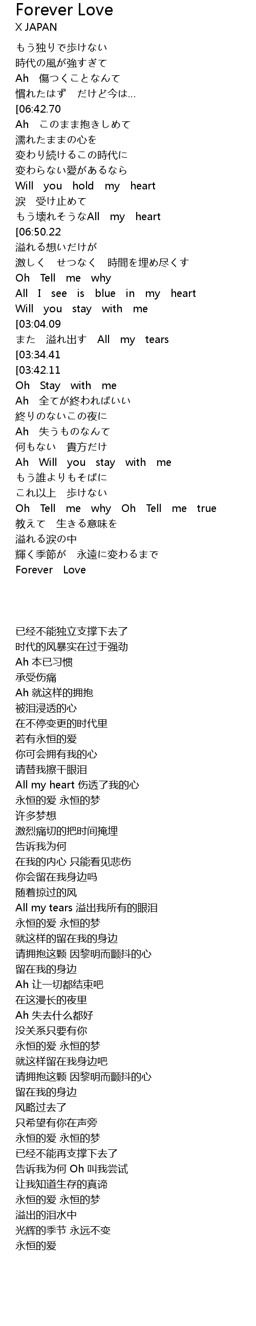 | [07:22.77][06:50.22][05:48.75][03:26.67][02:10.00] | Forever Love Forever Dream |