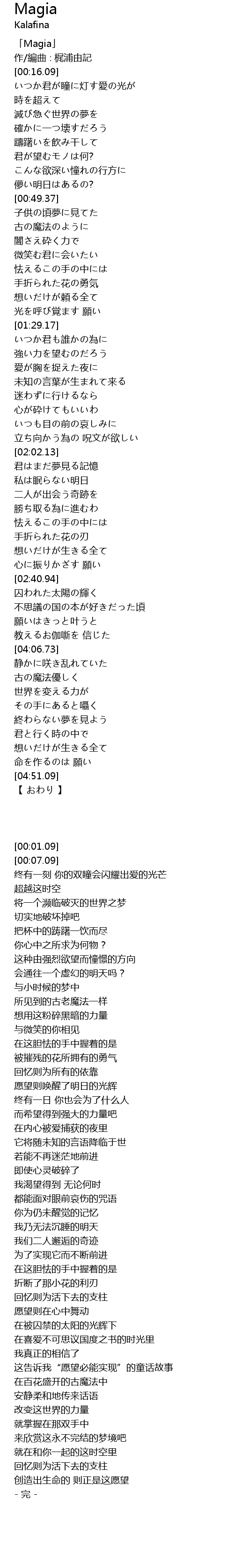 | [01:56.90] | 立ち向かう為の 呪文が欲しい |
