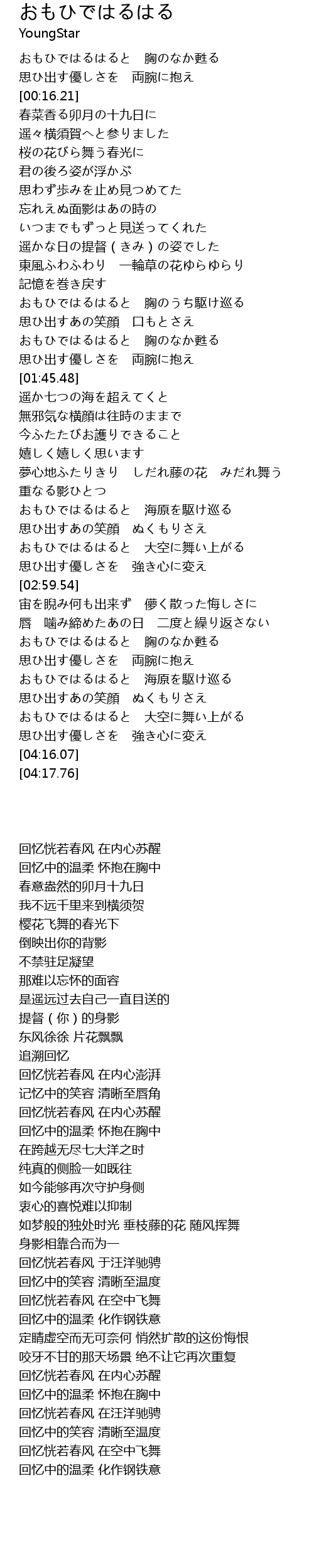 | [01:14.81] | おもひではるはると 胸のうち駆け巡る |