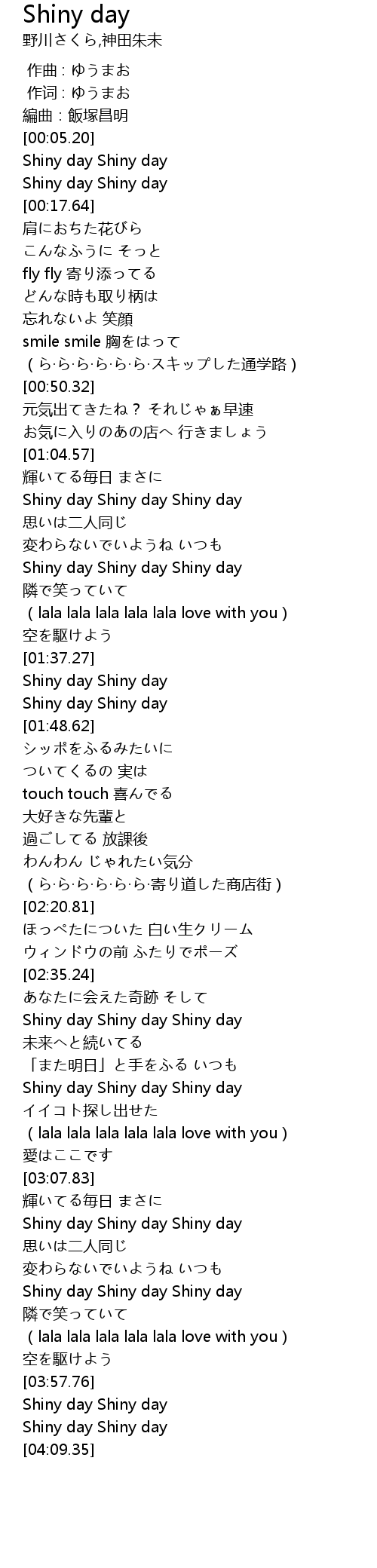 | [03:58.36] | Shiny day Shiny day |