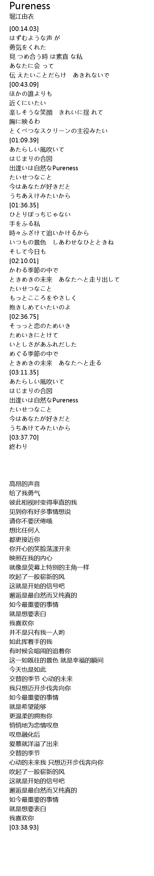 | [03:18.70] | 出逢いは自然なPureness |