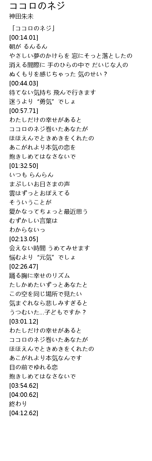 | [00:03.51] | 「ココロのネジ」 |