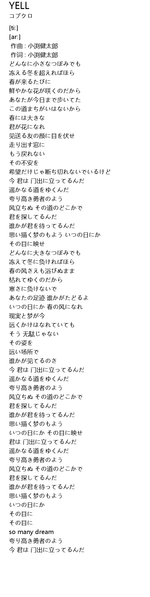 | [00:01.00] | 作词 : 小渕健太郎 |