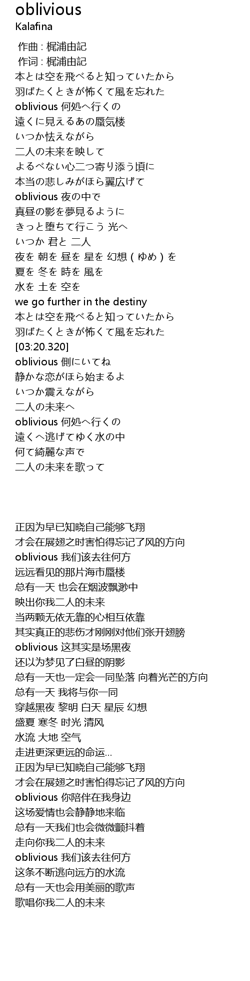 | [03:11.770] | 羽ばたくときが怖くて風を忘れた |