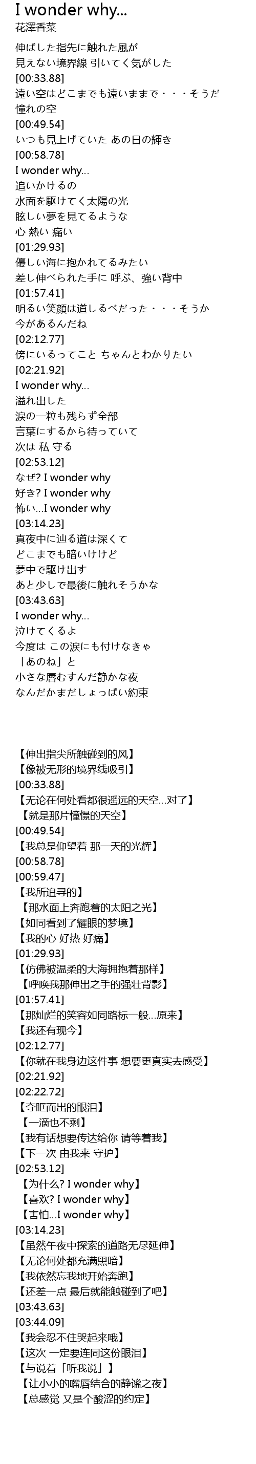 | [02:59.27] | ? I wonder why |
