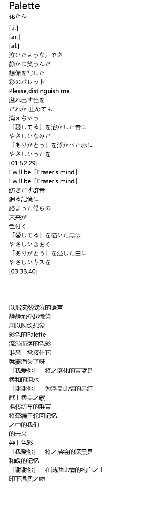 | [02:03.85] | I will be「Eraser's mind」. |