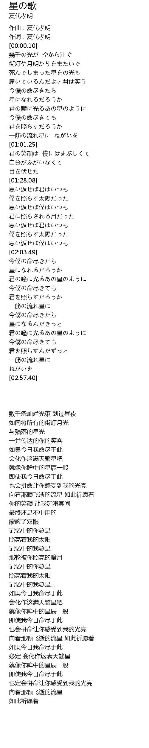 | [02:46.47] | 一筋の流れ星に |