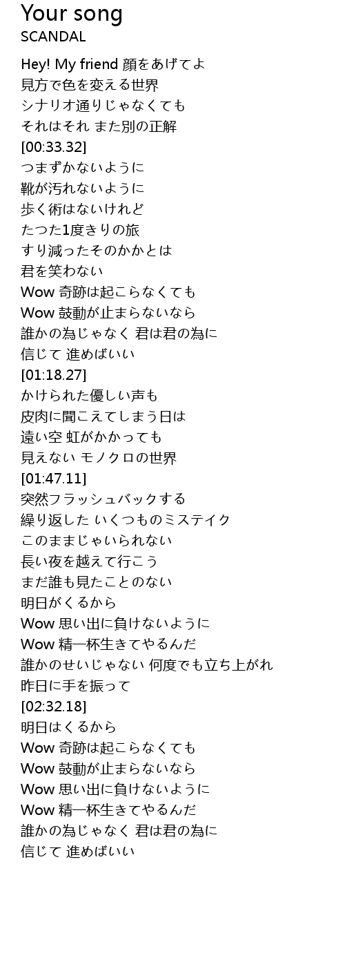| [03:16.88] | 誰かの為じゃなく 君は君の為に |