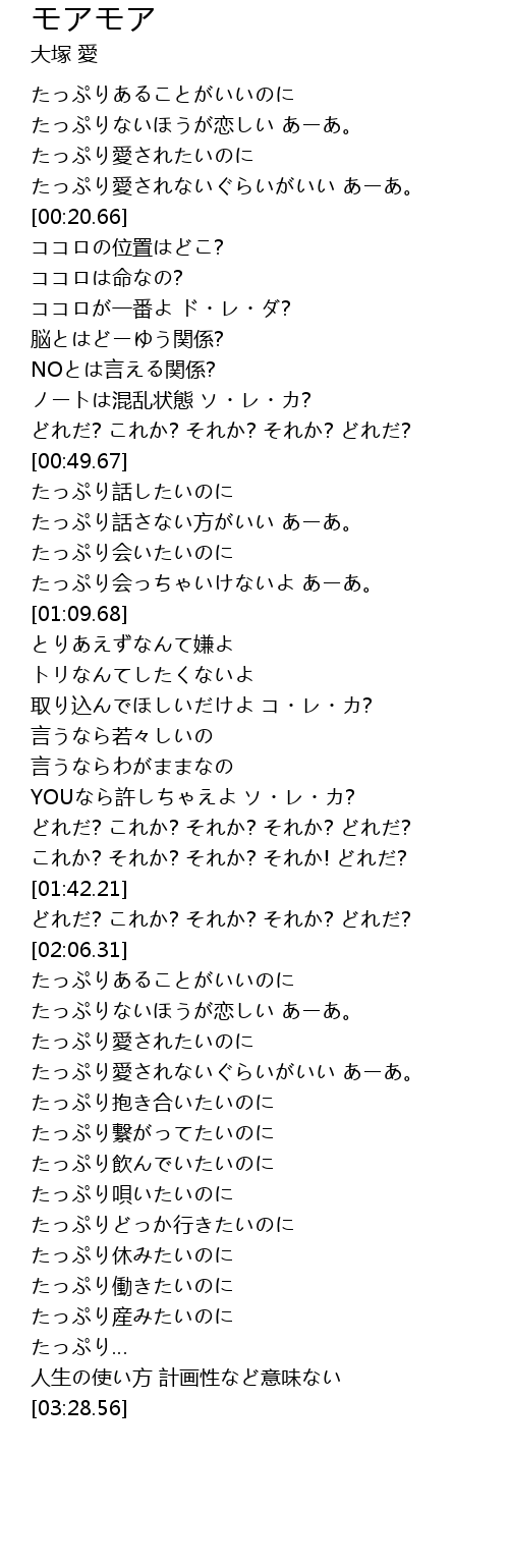 | [00:03.29] | たっぷりないほうが恋しい あーあ。 |