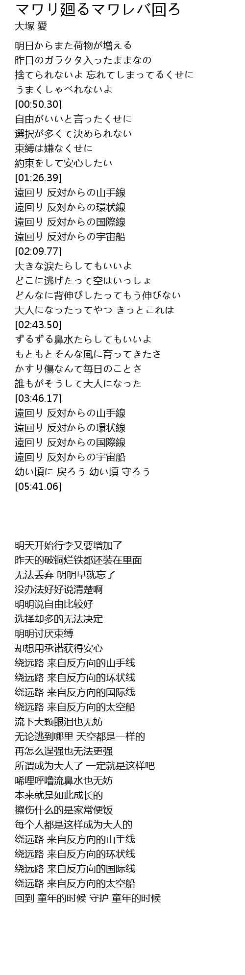 | [03:56.06] | 遠回り 反対からの環状線 |