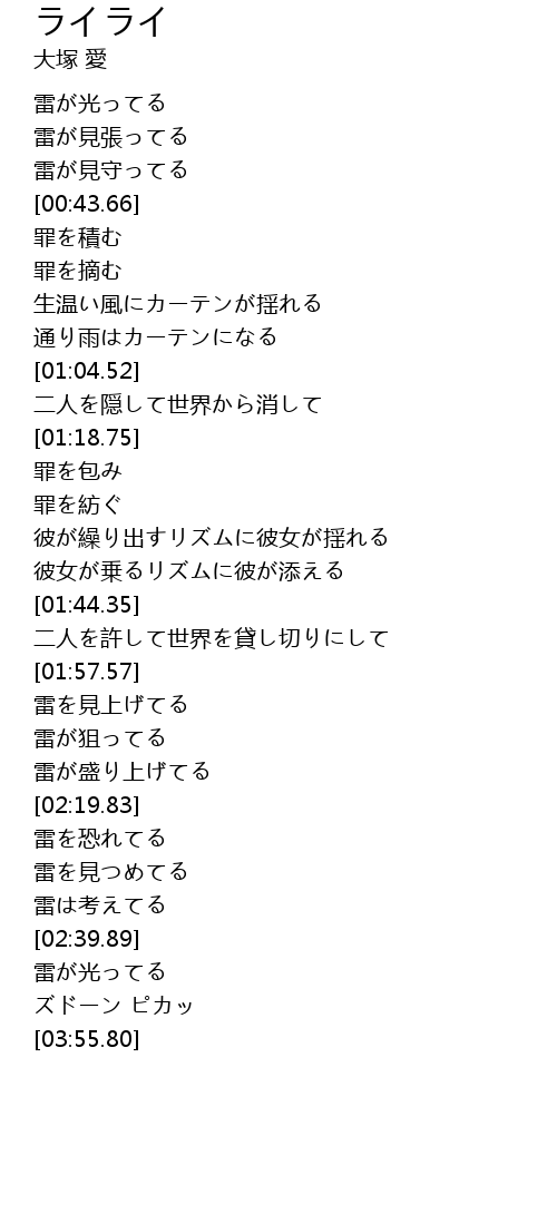 | [02:24.06] | 雷を恐れてる |