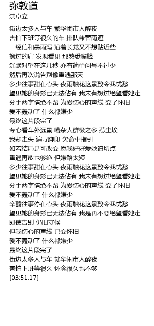 | [03:41.77] | 街边太多人与车 繁华闹市人醉夜 |