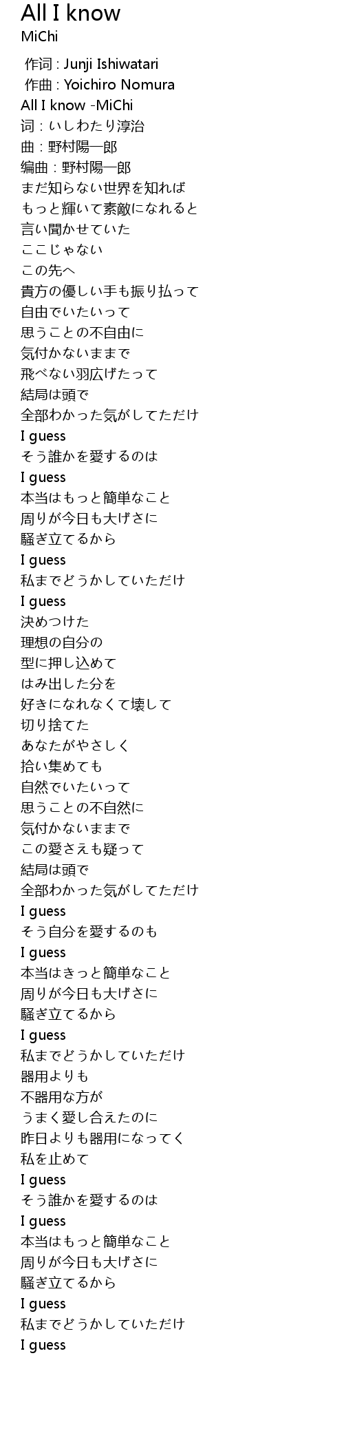 | [00:00.260] | All I know MiChi |
