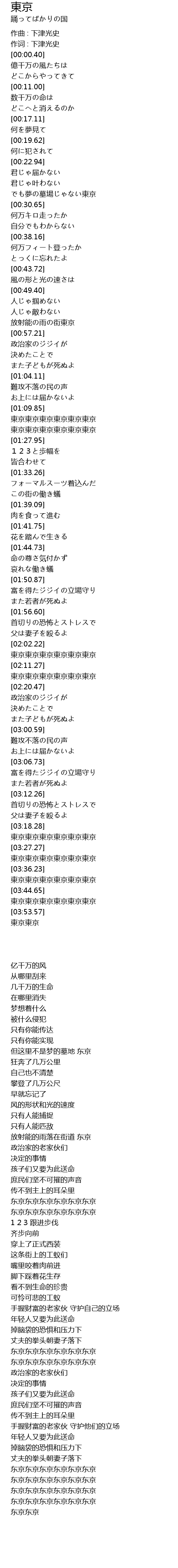 | [00:53.46] | 放射能の雨の街東京 |