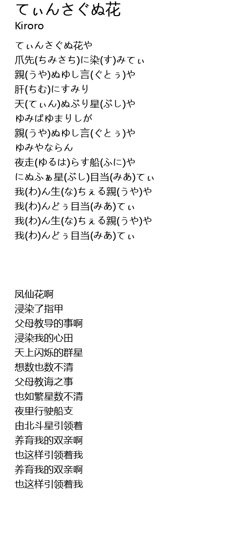 にぬふぁ星(ぶし)目当(みあ)てぃ |