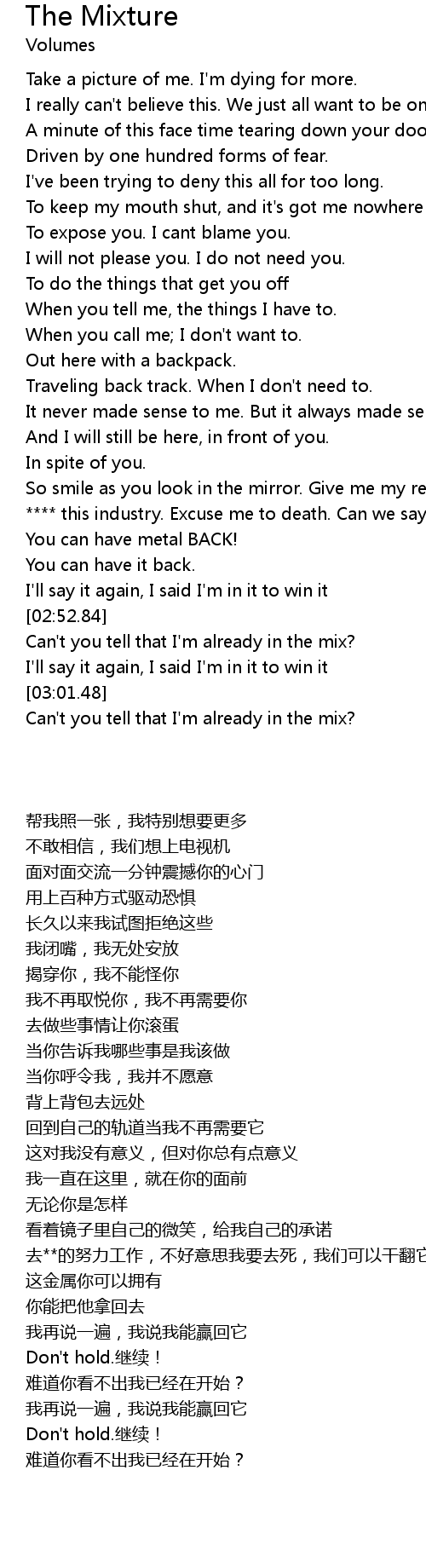| [03:02.83] | Can't you tell that I'm already in the mix? |