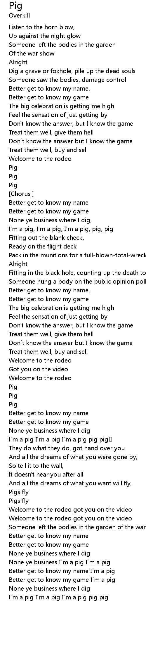 | Better get to know my name I m a pig | |