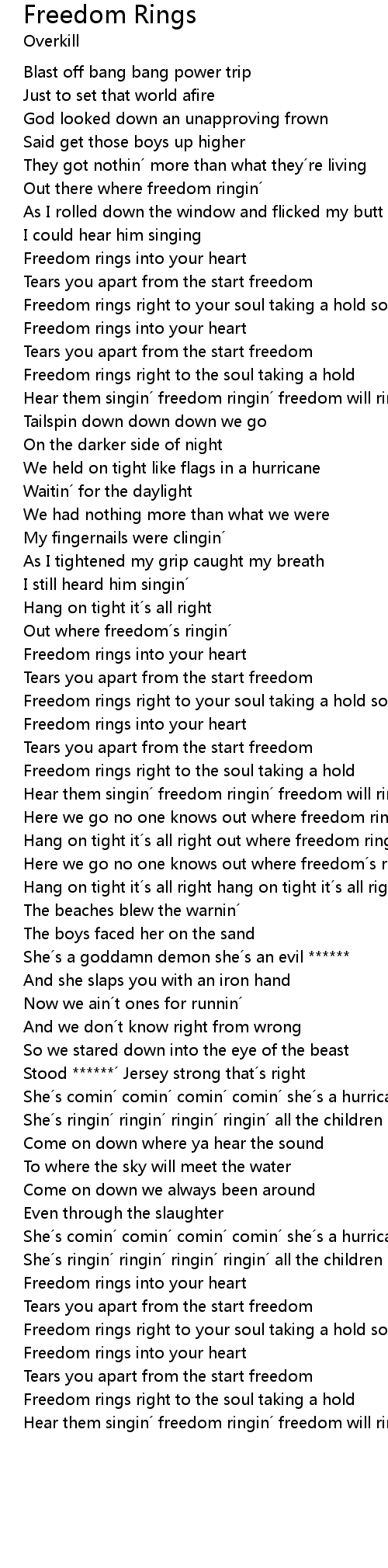 | Freedom rings right to your soul taking a hold so it goes | |
