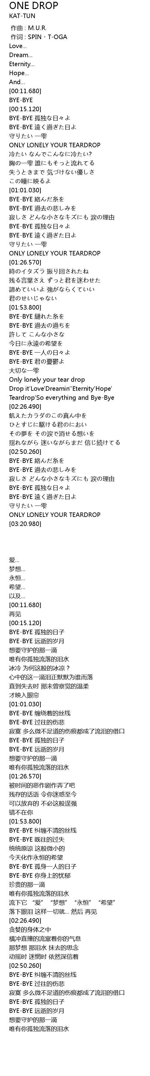 | [03:12.880] | ONLY LONELY YOUR TEARDROP |