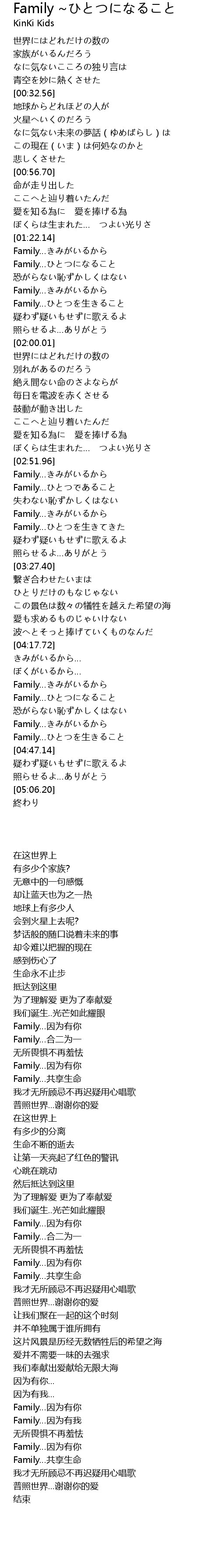 | [03:06.68] | Family…ひとつを生きてきた |