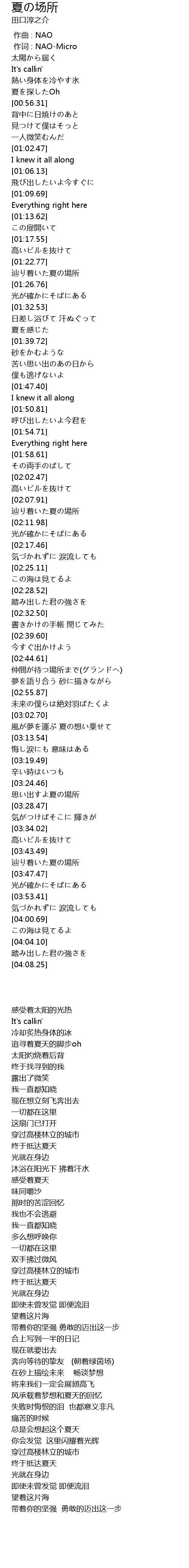 | [01:34.51] | 日差し浴びて 汗ぬぐって |