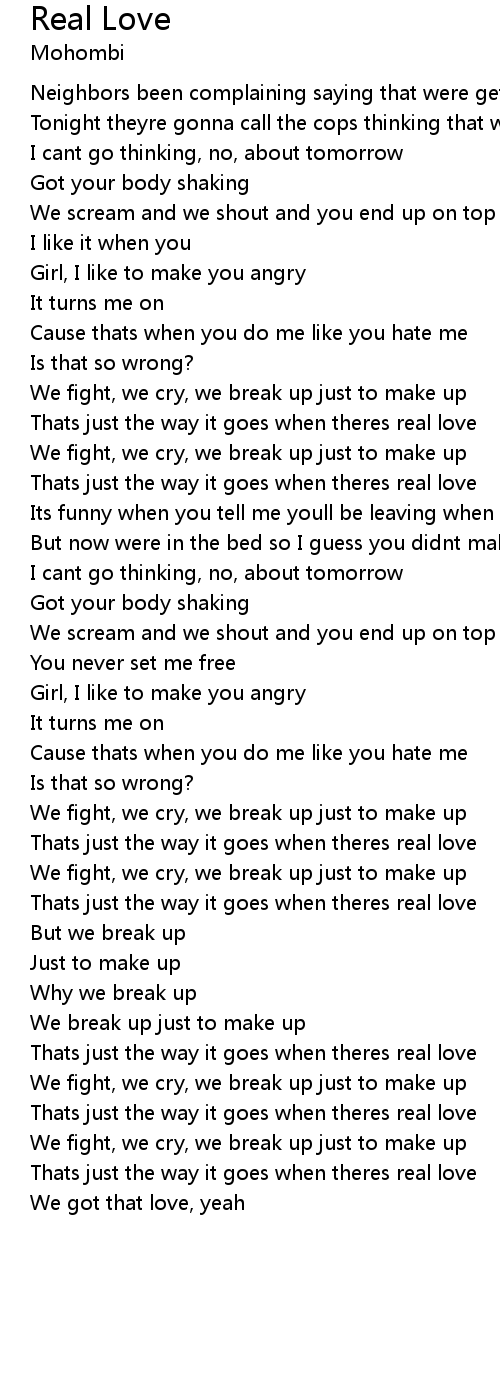 | We fight, we cry, we break up just to make up | |