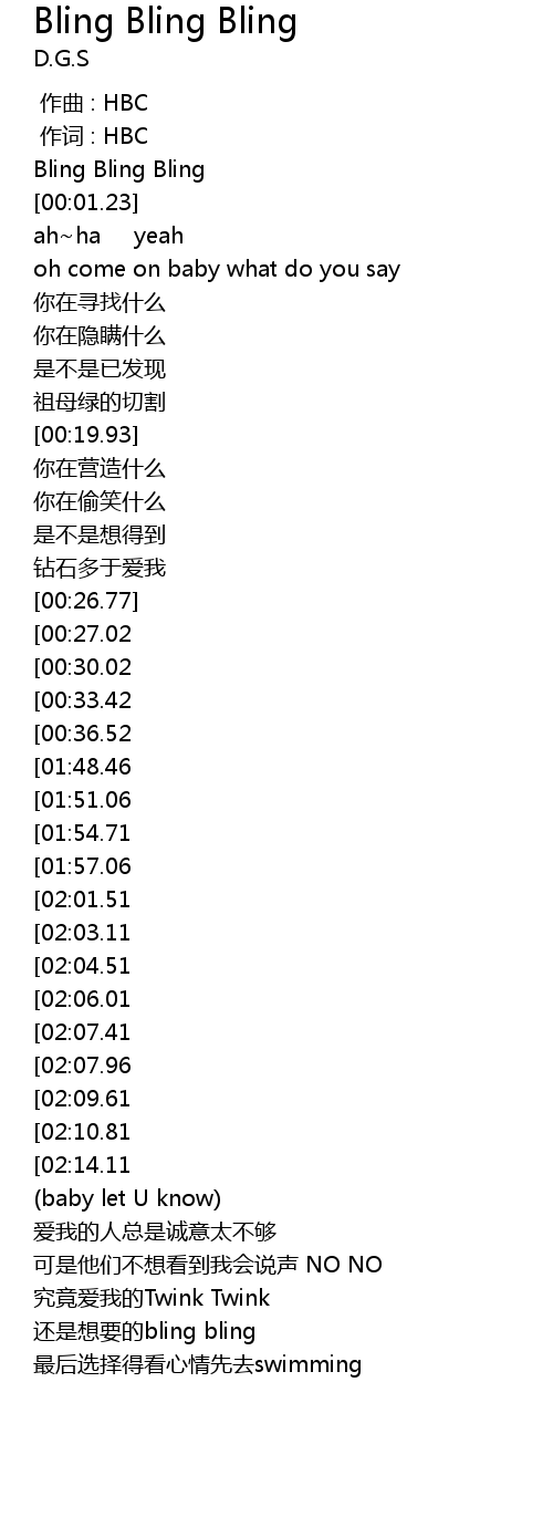| [02:47.10][02:07.96][00:59.47] | bling bling bling oh oh oh!!! |