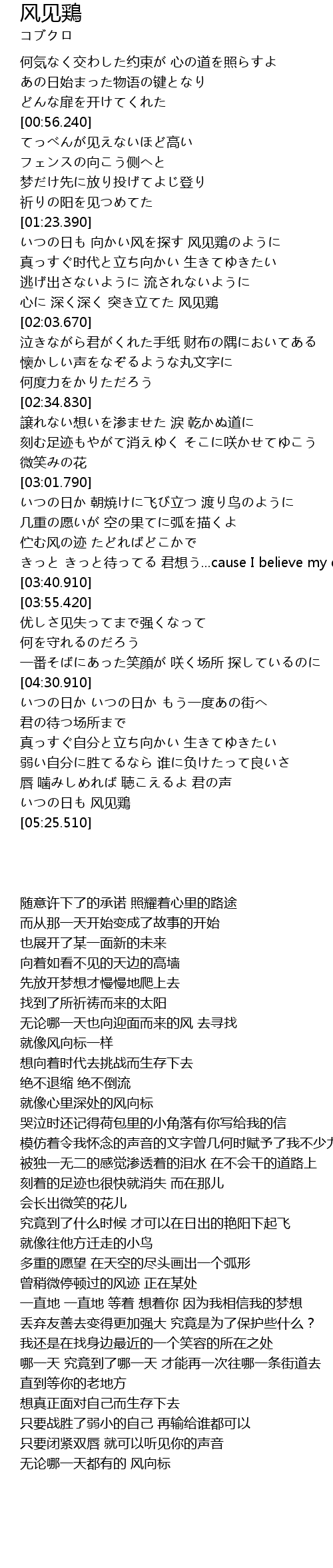 | [01:25.620] | いつの日も 向かい风を探す 风见鶏のように |