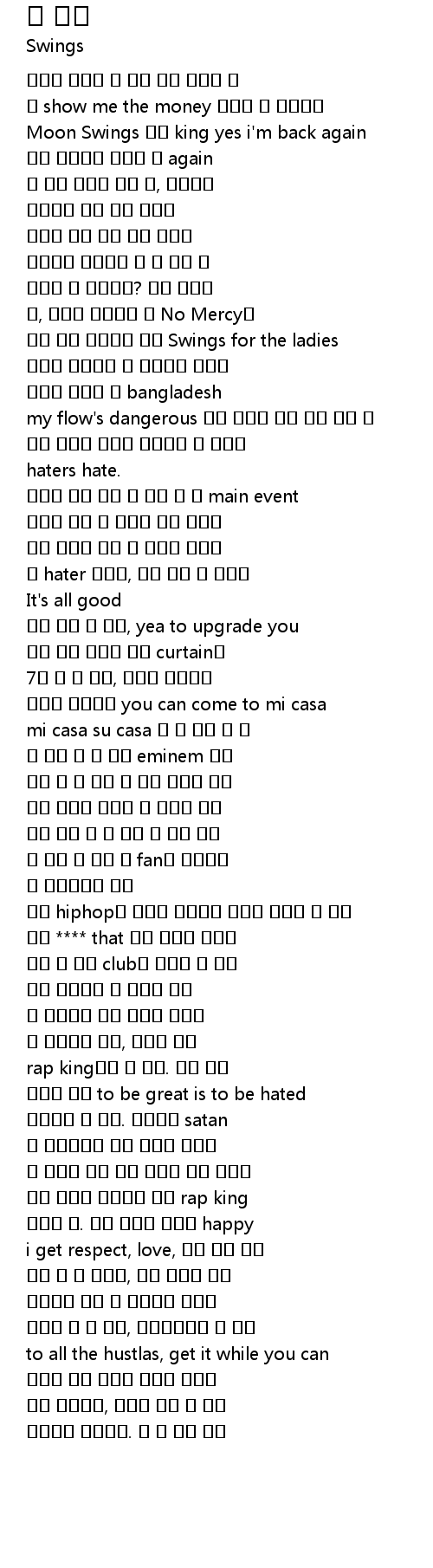 | [00:26.79] | Moon Swings 젊은 king yes i'm back again |