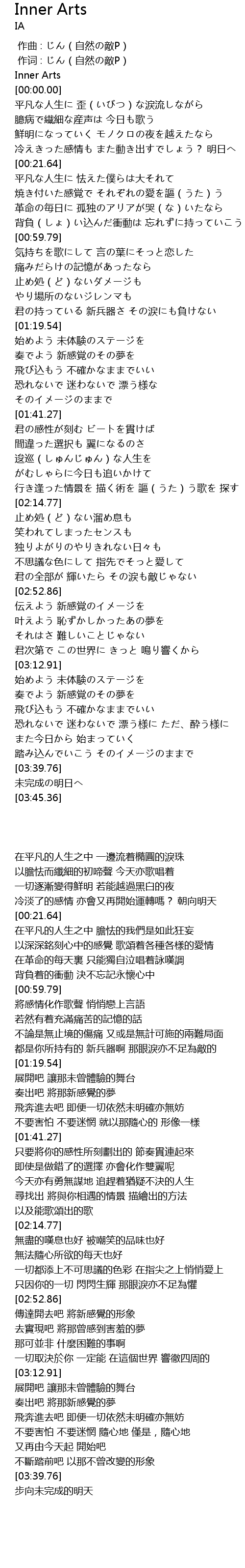 | [00:00.00] | 作词 : じん(自然の敵P) |