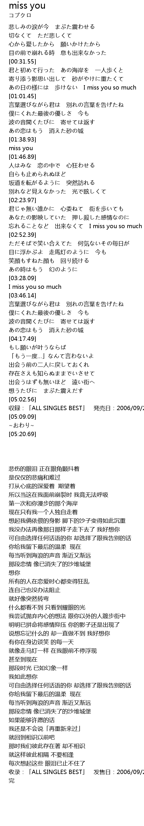 | [02:44.06] | 忘れることなど 出来なくて I miss you so much |