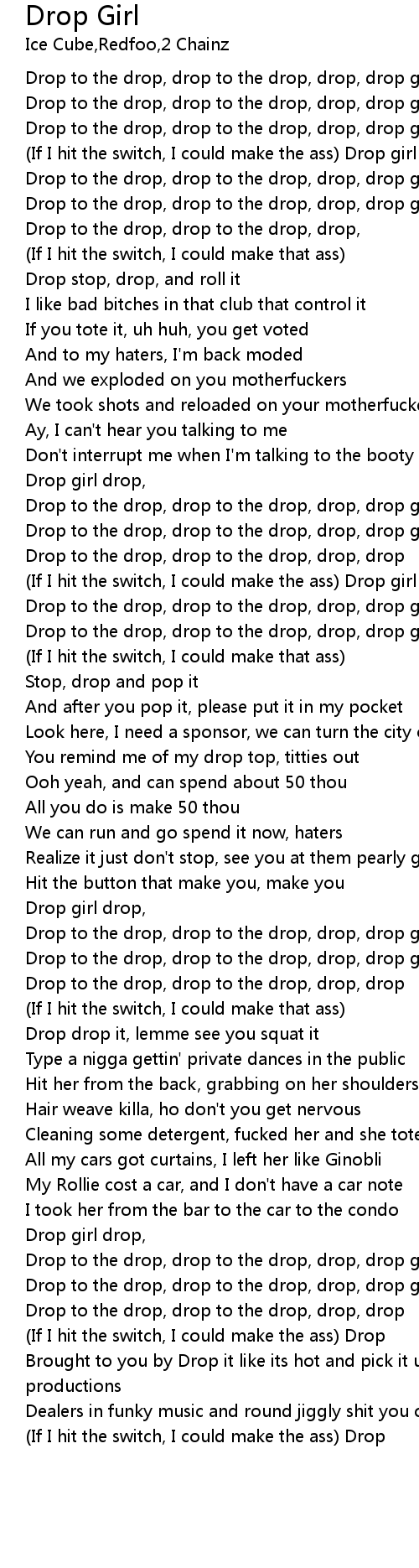| [01:50.290] | Drop to the drop, drop to the drop, drop, drop girl drop, |