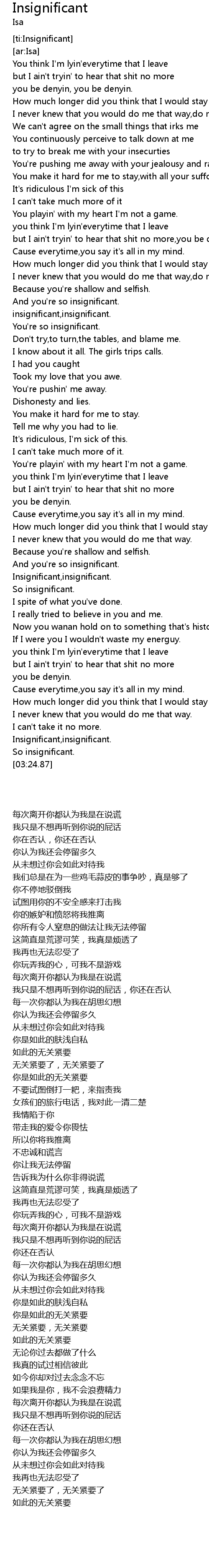 | [00:37.73] | We can' t agree on the small things that irks me |