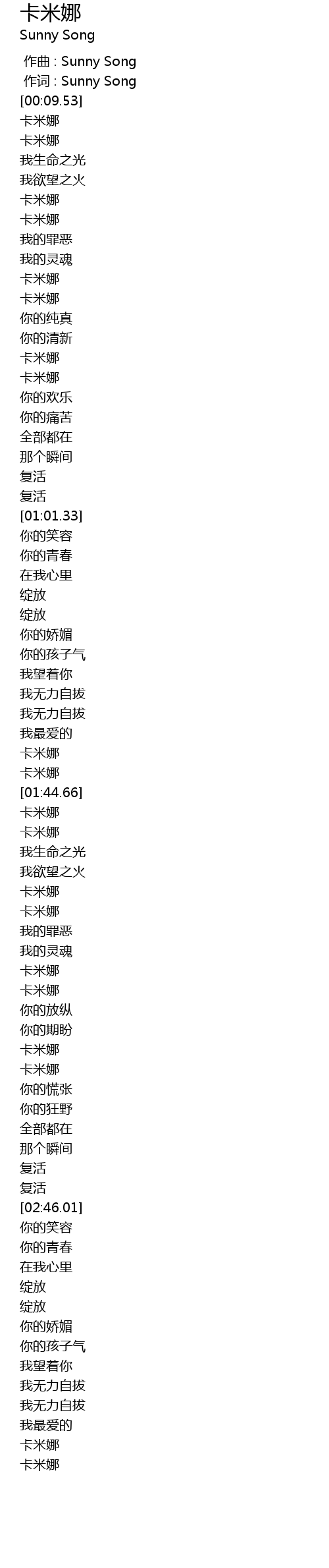 作词 : Sunny Song |