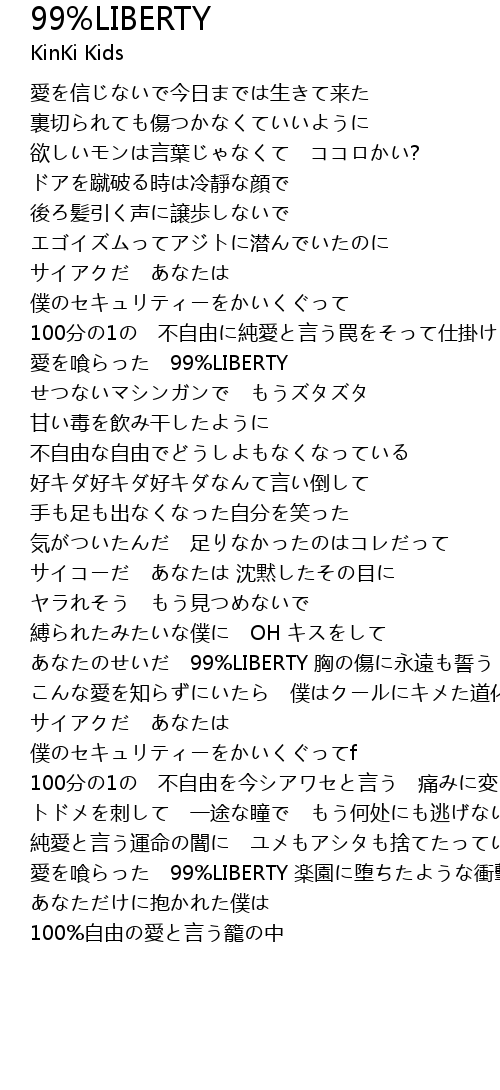 | [02:39.35] | あなたのせいだ 99%LIBERTY 胸の傷に永遠も誓う |