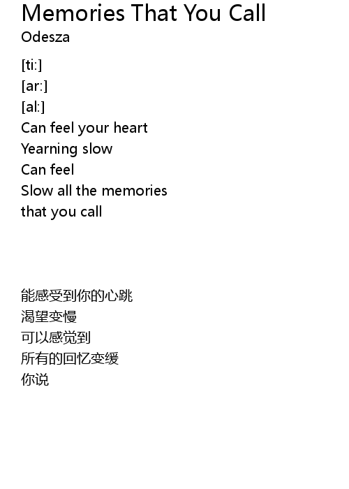 | Song | Memories That You Call |