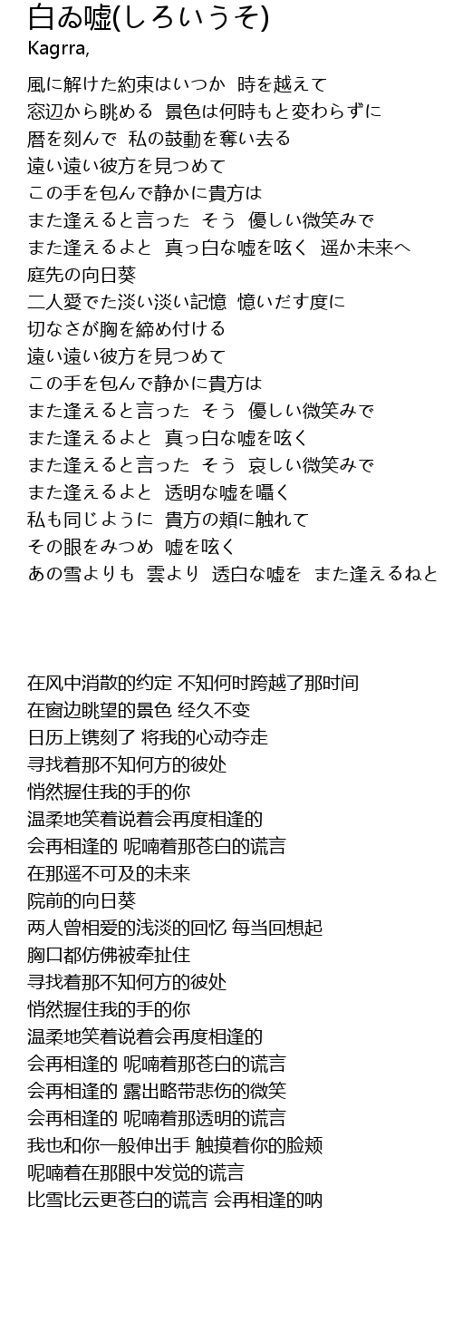 | [03:08.84] | あの雪よりも 雲より 透白な嘘を また逢えるねと |