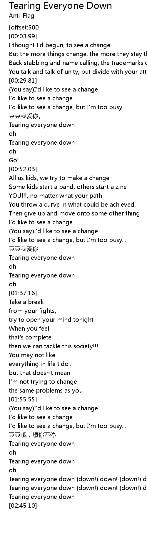 | [02:33.29] | Tearing everyone down down! down! down! down! down! |