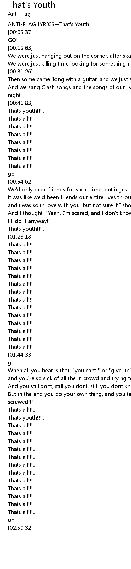 ANTI-FLAG LYRICS--That's Youth |