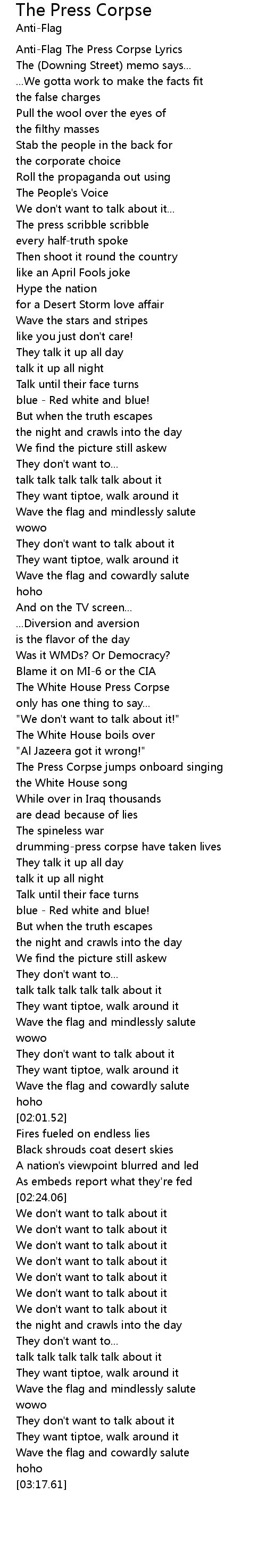 Anti-Flag The Press Corpse Lyrics |