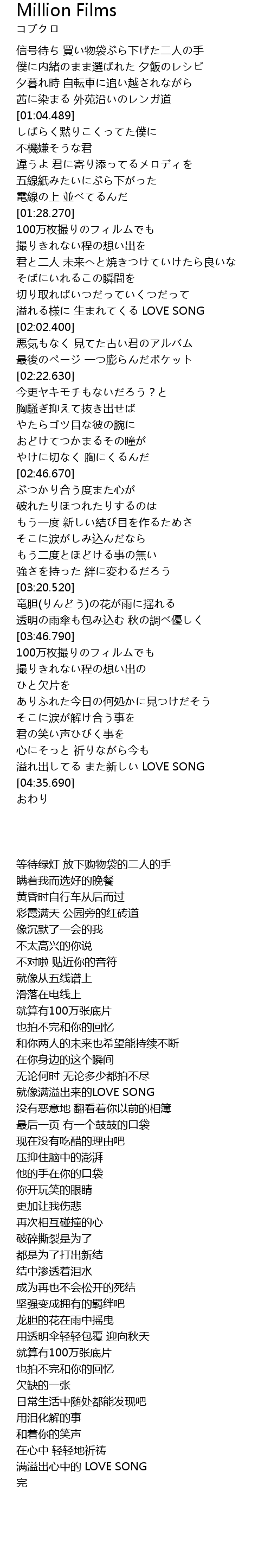 | [03:49.400] | 100万枚撮りのフィルムでも |
