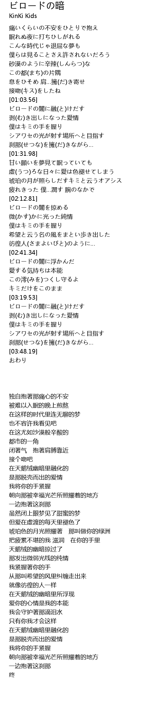 | [02:36.73] | 彷徨人(さまよいびと)のように… |