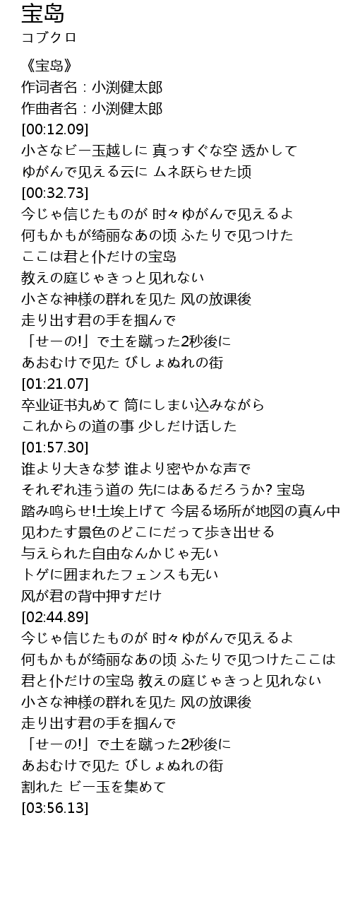 | [02:06.21] | それぞれ违う道の 先にはあるだろうか? 宝岛 |