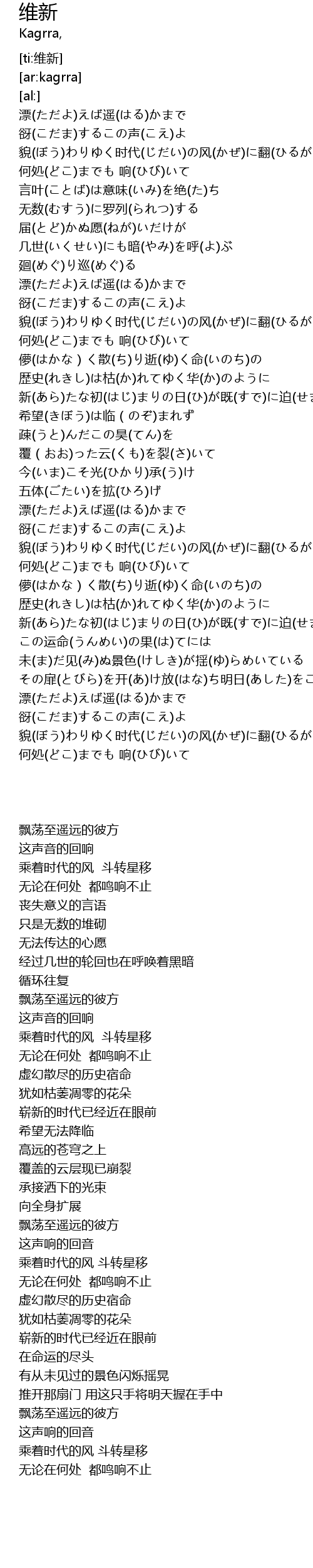 | [04:05.95] | 何処(どこ)までも 响(ひび)いて |