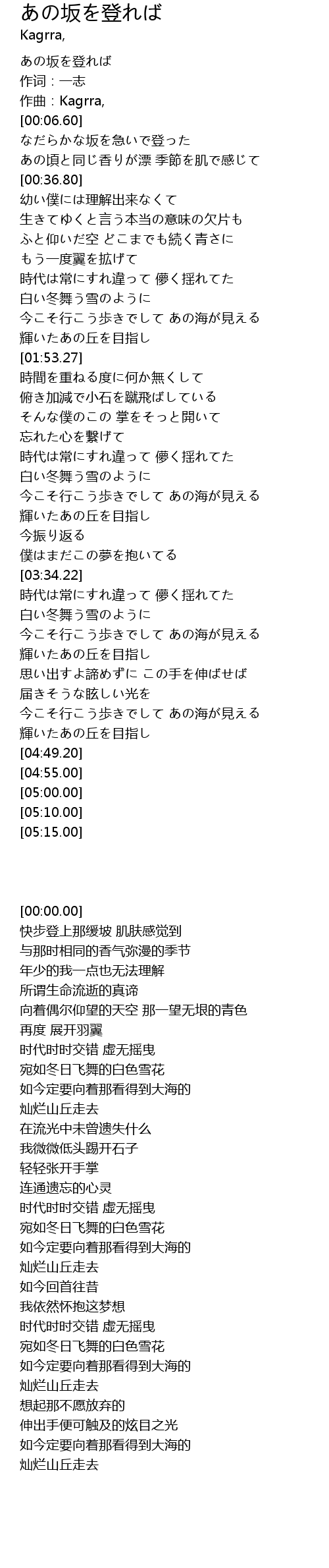 | [00:00.00] | あの坂を登れば |